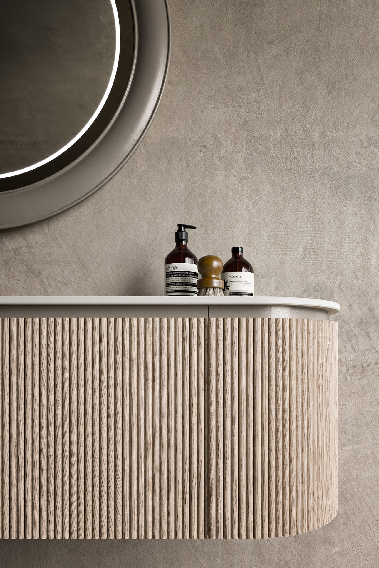 Archeda prosegue il percorso evolutivo della collezione Tulle con una nuova proposta compositiva che mette al centro il dialogo tra materia, lavorazione e funzione. Dopo aver introdotto il tema della curvatura come elemento distintivo del sistema, Tulle si sviluppa oggi in una configurazione che ne valorizza l’espressività attraverso superfici lavorate e soluzioni progettuali mirate. Il protagonista è il Rovere cannettato, una finitura che conferisce profondità e vibrazione alla materia, trasformando il fronte del mobile in un elemento architettonico capace di definire lo spazio. La texture verticale amplifica la percezione del volume e introduce una dimensione tattile che arricchisce l’esperienza quotidiana. Disponibile in sette varianti, tra cui Rovere Corda e Rovere Quarzo, il cannettato interpreta una sensibilità contemporanea orientata a tonalità naturali, calde e avvolgenti.
