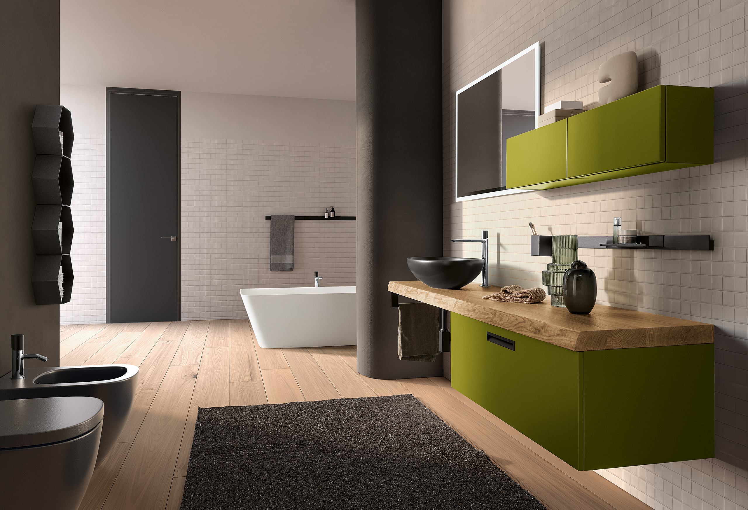 LUNA – white aluminum profile, 2.5 cm perimeter satin finish with LED lighting (K 4000).