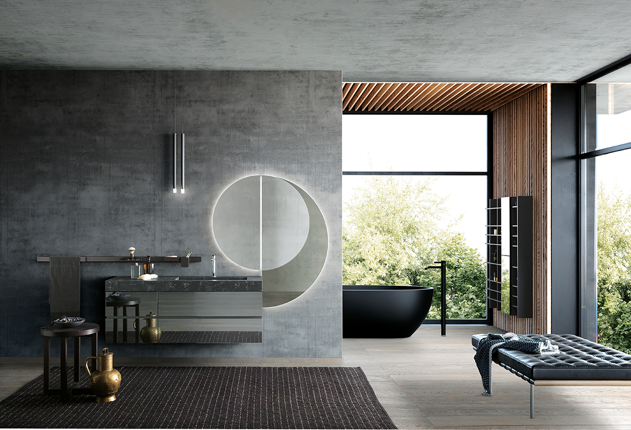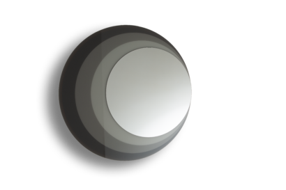 JUPITER – Specchio con spicchio laterale in finitura fumé. Schiena posteriore rientrante (P.2,3).